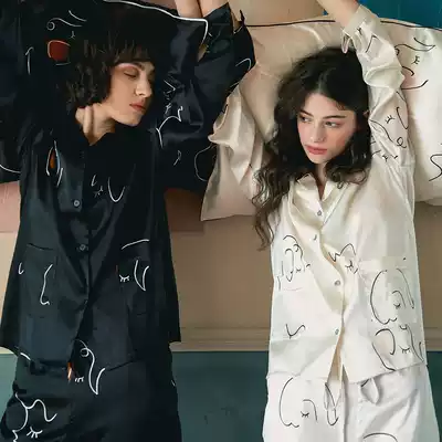 notjustpajama (official) silk pajamas female summer new printed mulberry silk home clothing