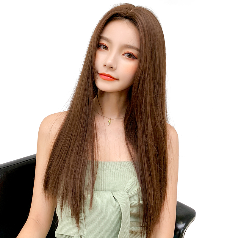 Wig woman's long hair is divided into temperament, long straight hair, one-piece non-marking hair replacement film, Hanfu antique style wig piece