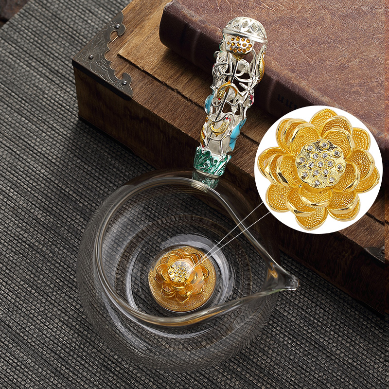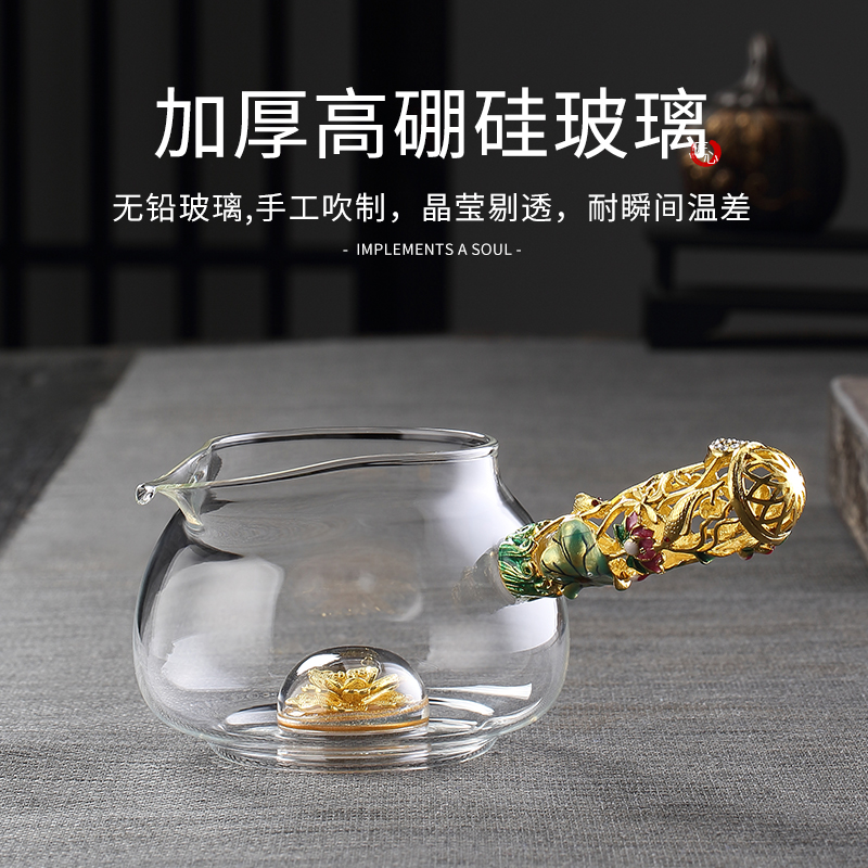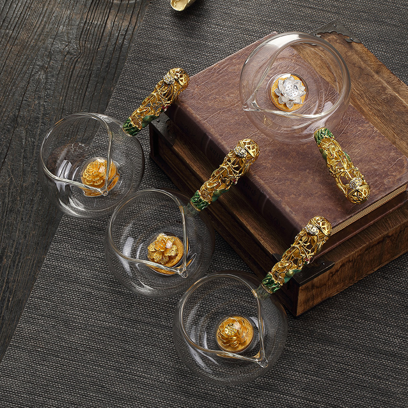 Glass Gongdao Cup Tea Leak Set Lotus Inlaid Silver Filter Male Cup Thickened Heat-Resistant Tea Dispenser Kung Fu Tea Set Accessories