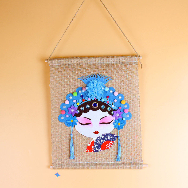 Peking Opera Characters Cloth Painting Random Color Pattern A Finished Peking Opera Figure 10 Deputy set of Peking Opera characters DIY material bags random packs of blank numb hanging random pair 40 40 * 30 cm Peking Opera characters D