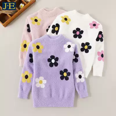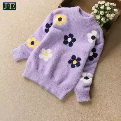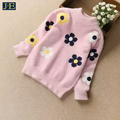 Girls sweater pullover autumn winter clothing 2021 new children's mink velvet foreign pie knit sweater thickened velvet base shirt