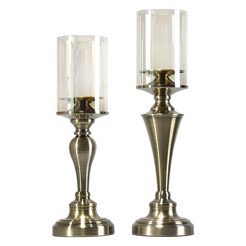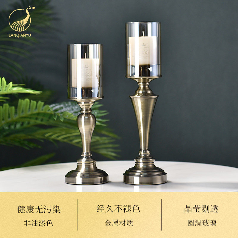 Creative Eu Style Home Luxurious Metal Glass Table Retro Candle Holder Pendulum Pieces American Living-room Dining Room Soft Decorations