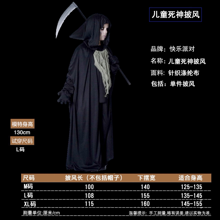 Children's death cloak M code triangle fork gloves Children's death cloak L code triangle fork gloves Height 110cm-135cm Wear (cloak sickle gloves) 110