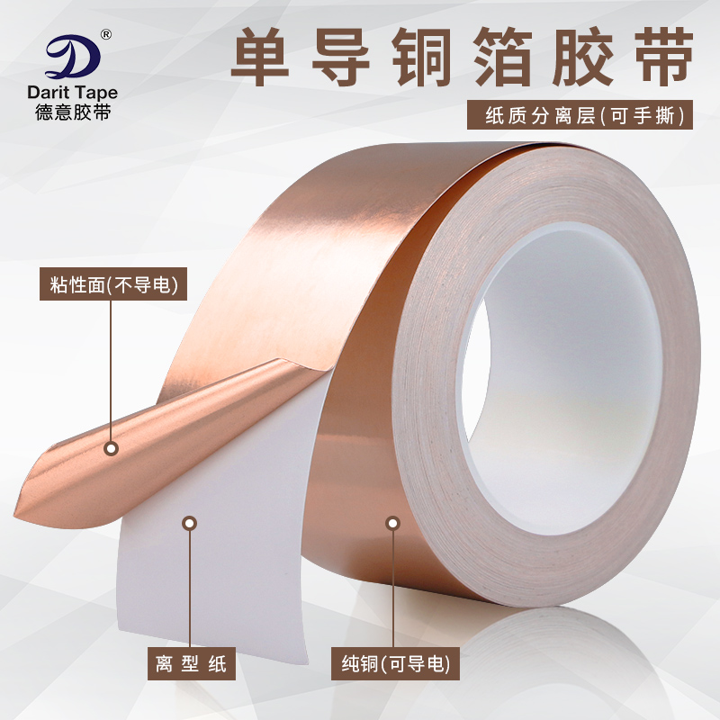 Demeaning adhesive tape single-sided conductive copper foil adhesive tape reinforced signal shielding anti-interference resistant to high temperature electromagnetic radiation-resistant pure copper self-adhesive single-sided copper foil adhesive tape