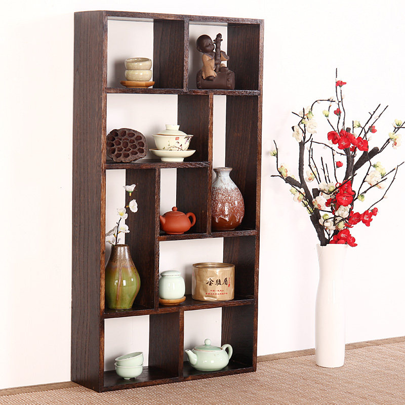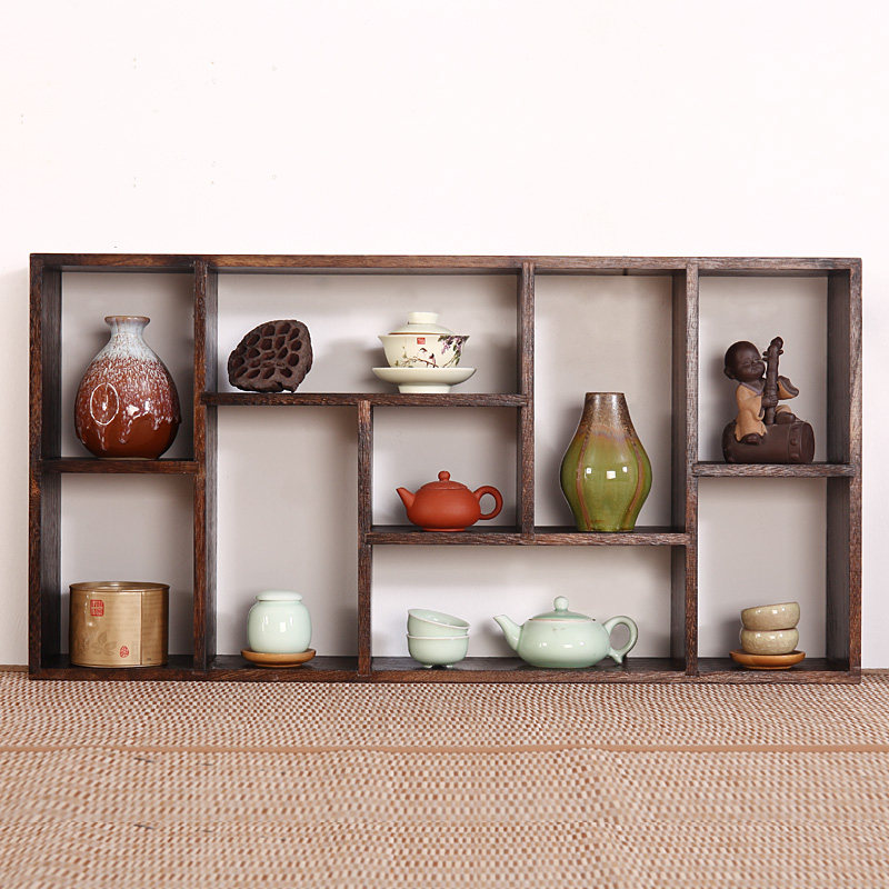 Retro solid wood teacup rack teapot rack tea set storage display rack bogu rack wall tea ceremony finishing rack