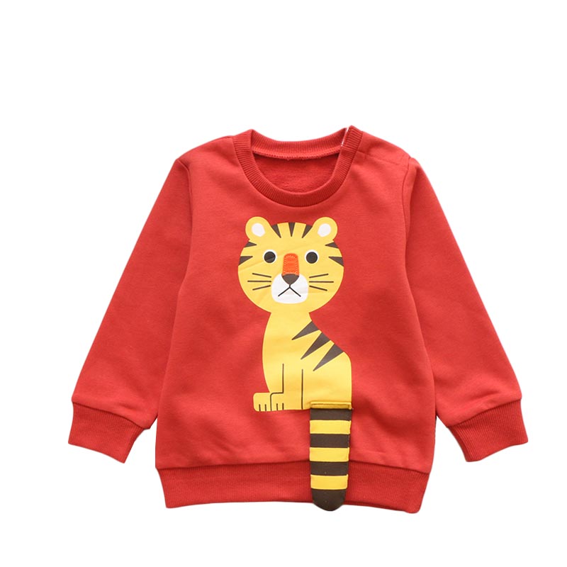 Export Japanese children's clothing spring autumn season pure cotton male and female children's clothing head sweatshirt resting hair ring dinosaur tiger kitty blouses-Taobao