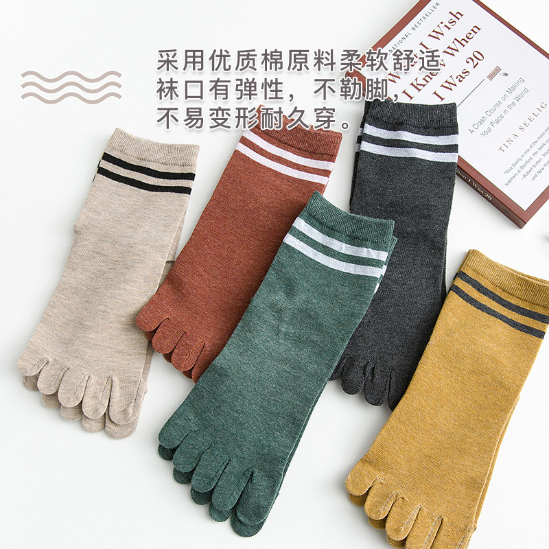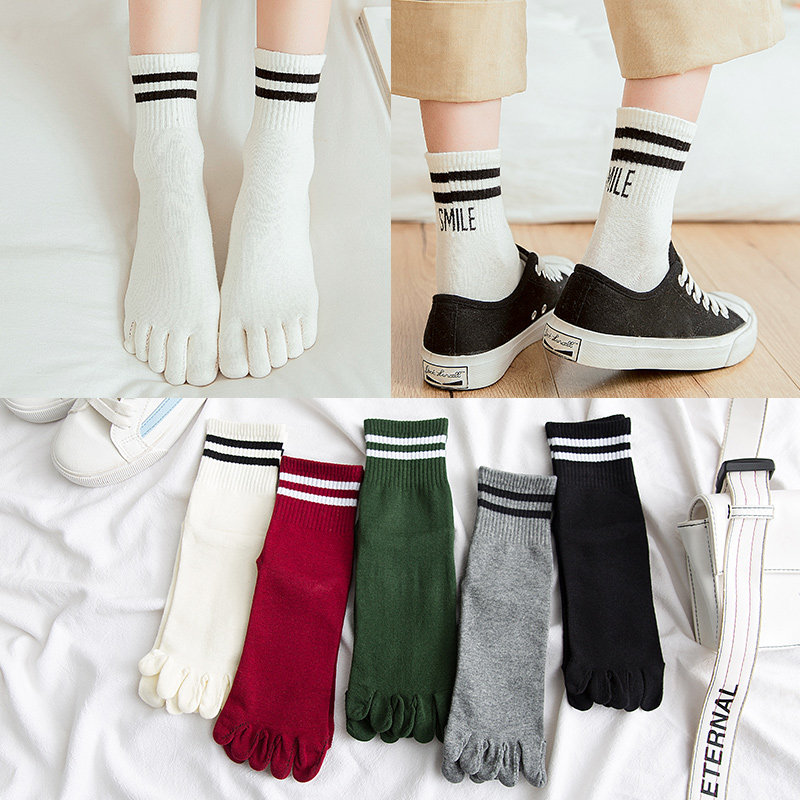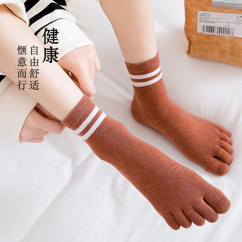 Five Finger Socks Lady Thin slim Anti-foot Gas Sub-toe Sox College Wind Sweat Sweat Pure Color Striped 100 hitch Silo Socks