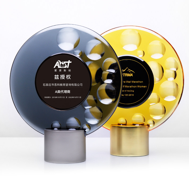 Glass prize plate Metal base size (width 22cm * height 28cm)