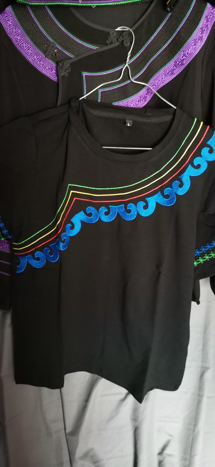 Great Liangshan Yi ethnic T-shirt jacket fine embroidery machine embroidered pure cotton T-shirt male and female with same fabric comfort