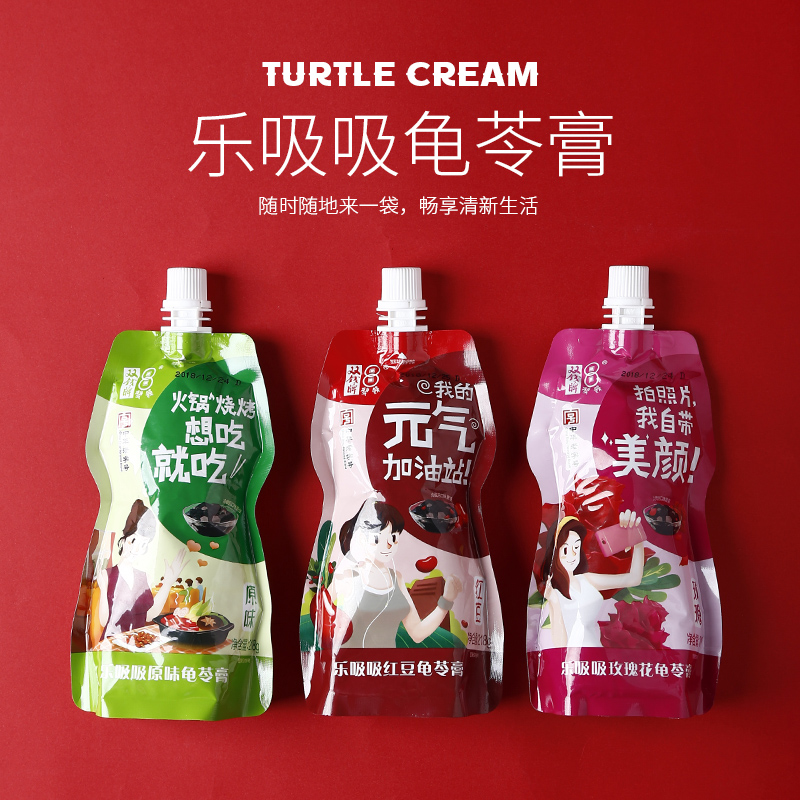 Guangxi Wuzhou authentic double money brand can suck turtle herbal jelly music suction 218g*24 bags of large packaging leisure snacks
