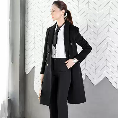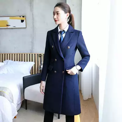 Professional woolen coat women's long version Korean version of cotton sandwich thickened sales front desk work clothes overcoat winter