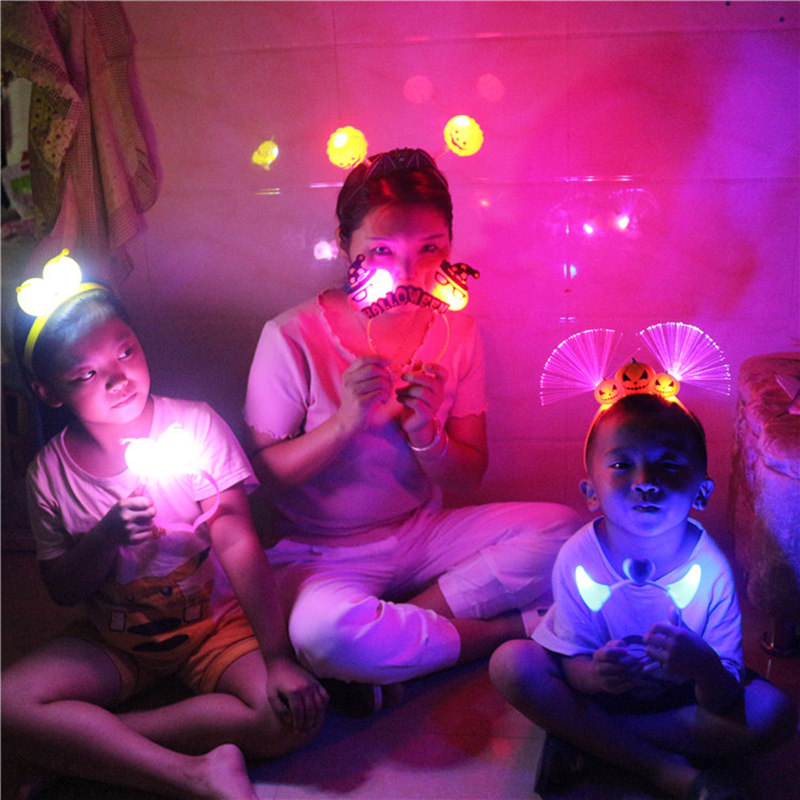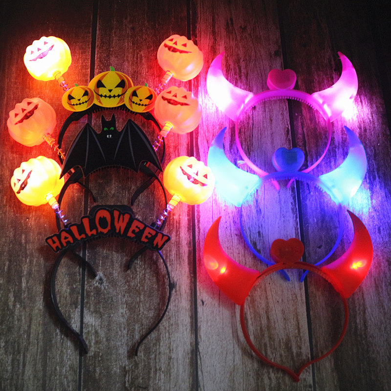Halloween headdress glowing headband children adult flash pumpkin lantern hairclip dress props evil horns hairband