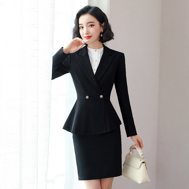 Career clothing suit 2019 autumn and winter suit female sleeve business dress temperament jewelry shop hotels working clothes