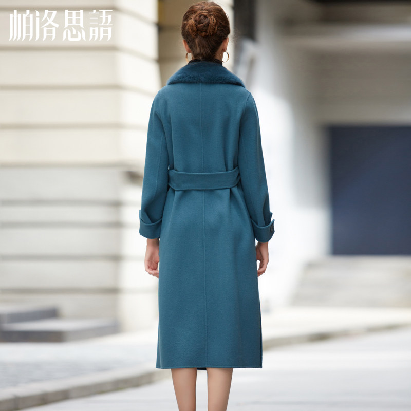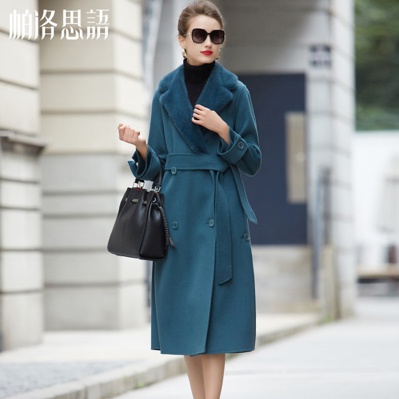 21 autumn and winter new popular double face, woman long version with knee turrets fur collar non-cashmere fur coat