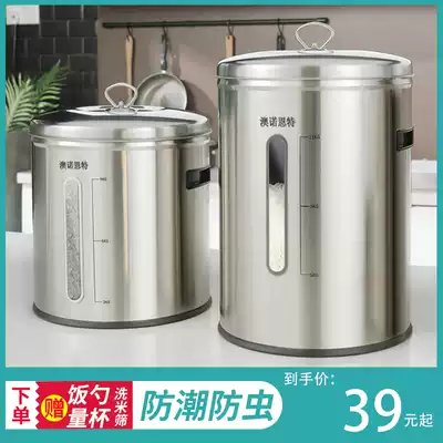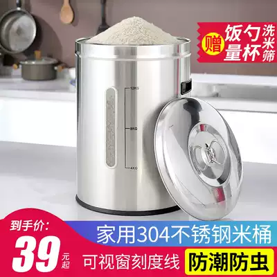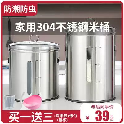 Stainless steel rice barrel 304 household insect-proof moisture-proof 50kg rice tank sealed thickened surface rice storage box 15kg