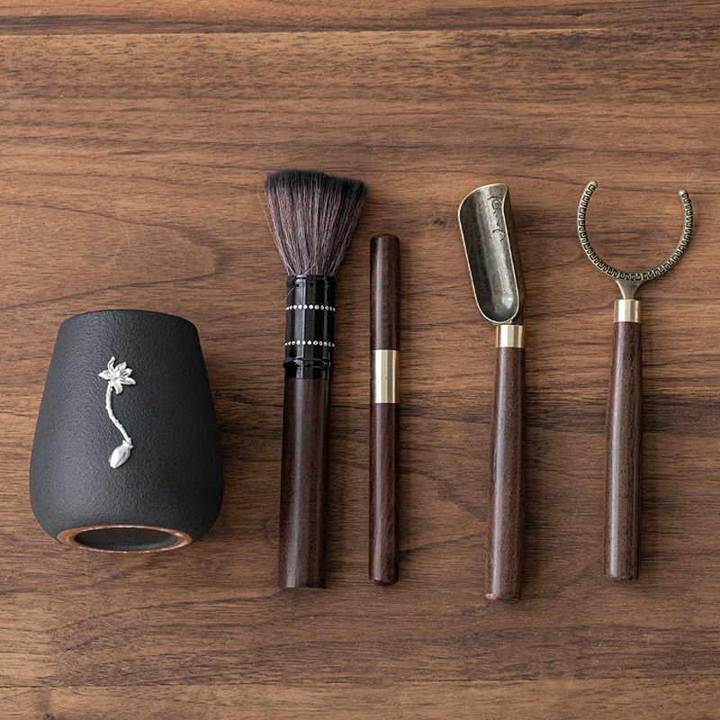 Tea ceremony six gentlemen set ebony kung fu tea set spare parts solid wood tea needle tea brush Daquan combination 6
