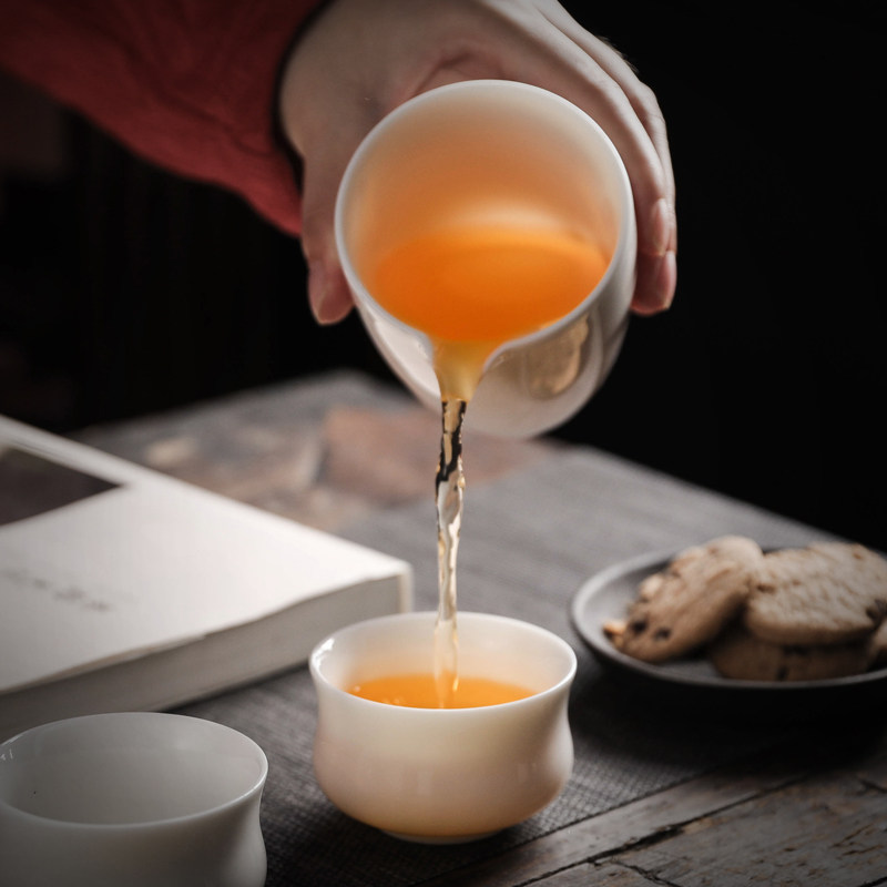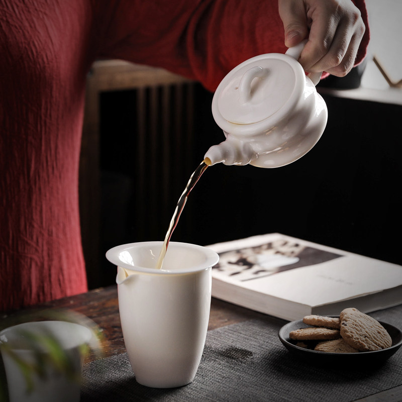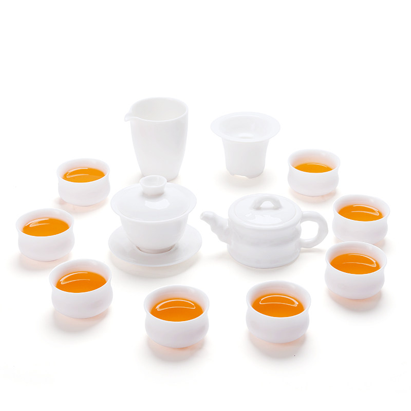 Inkun Dehui white ceramic kung fu tea set household with white ceramic cup gift box custom logo