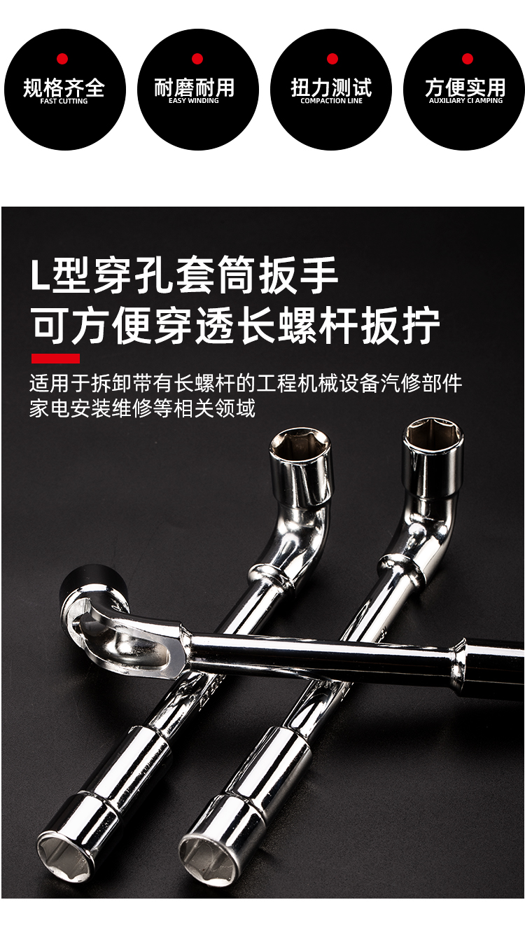Pipe sleeve 7-character elbow wrench Milling mouth perforated double-headed outer hexagonal L-shaped sleeve head 13-20-7-8-36mm