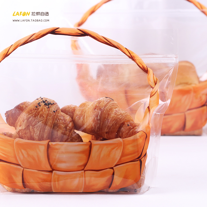 Bread bag transparent hand basket self-sealing zipper bag meal bag square bag 450g toast baking bag