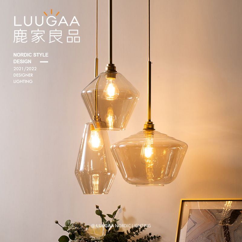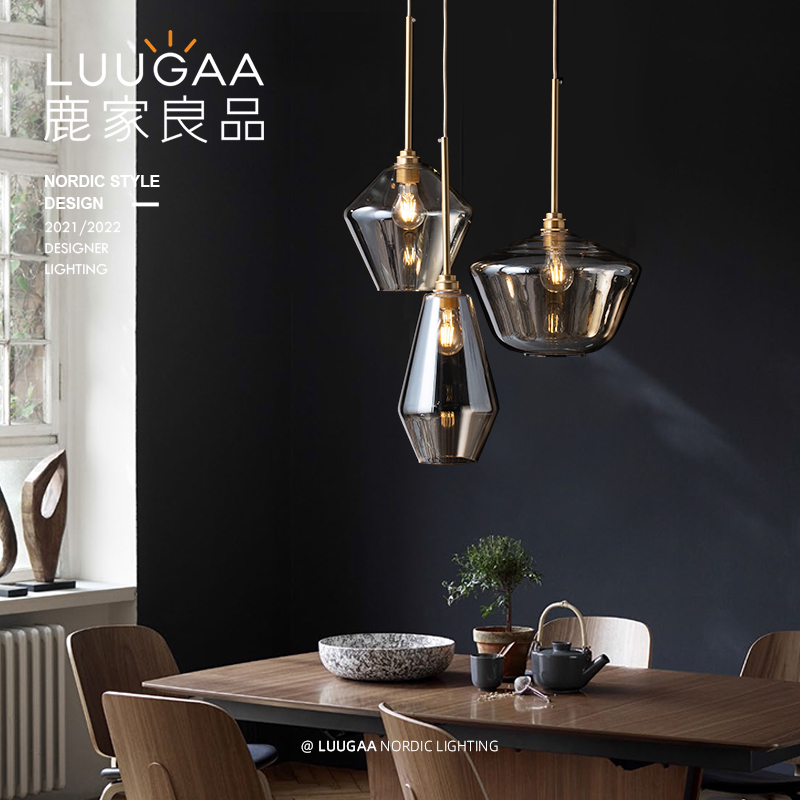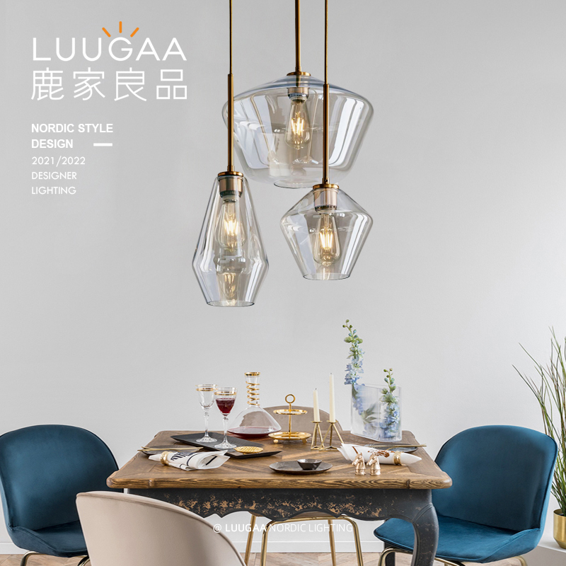 Lujia Liangpin Nordic modern minimalist dining room Glass light luxury chandelier Creative personality Industrial style dining table bar light