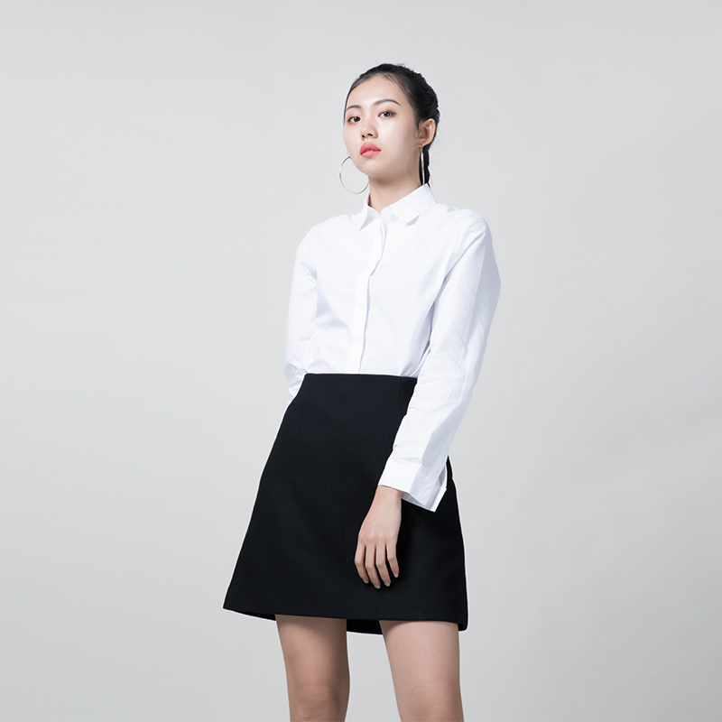 NOME women's simple commuter long-sleeved shirt Lapel casual slim fit suit shirt bottom inside shirt