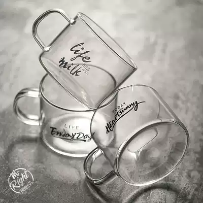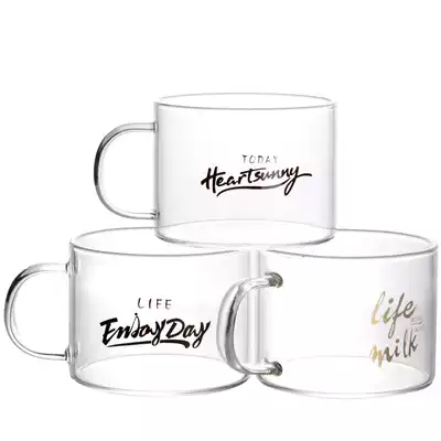 Lotus Xiansen coffee cup letter belt handle glass Juice cup Large capacity heat-resistant teacup Oat breakfast cup