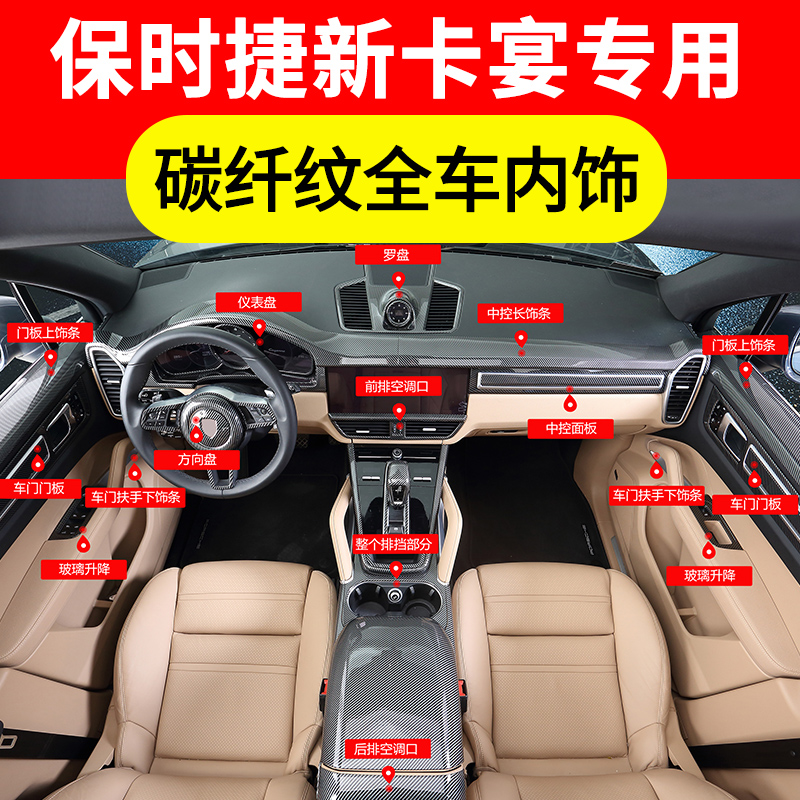 18-year-old new Cayenne carbon fiber pattern complete set of top interior trim 18-year-old new Cayenne peach wood grain complete top interior interior 18-year-old new Cayenne China red pattern complete top interior door panel