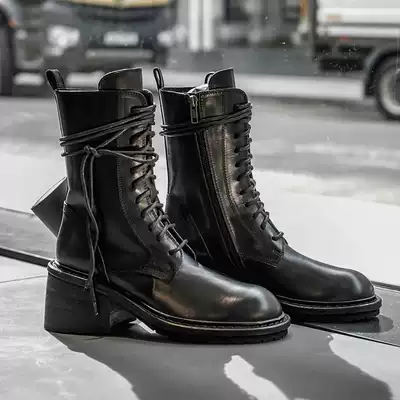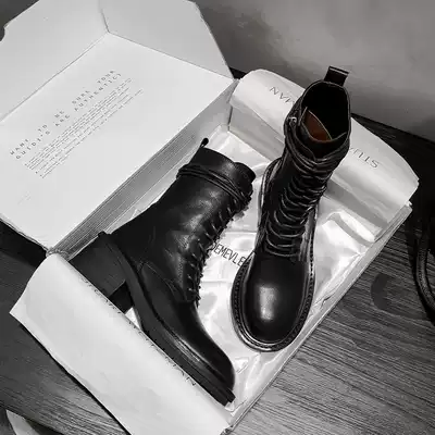 ANN Martin boots women's British style ins fried street leather boots spring and Autumn single boots high-heeled thick-heeled mid-barrel boots Korean boots