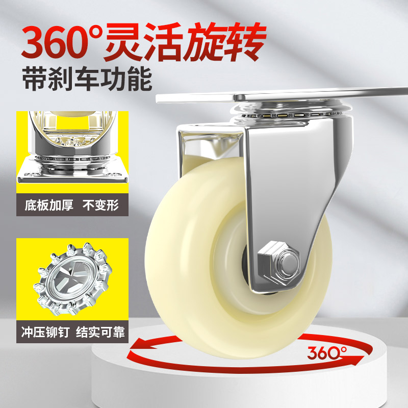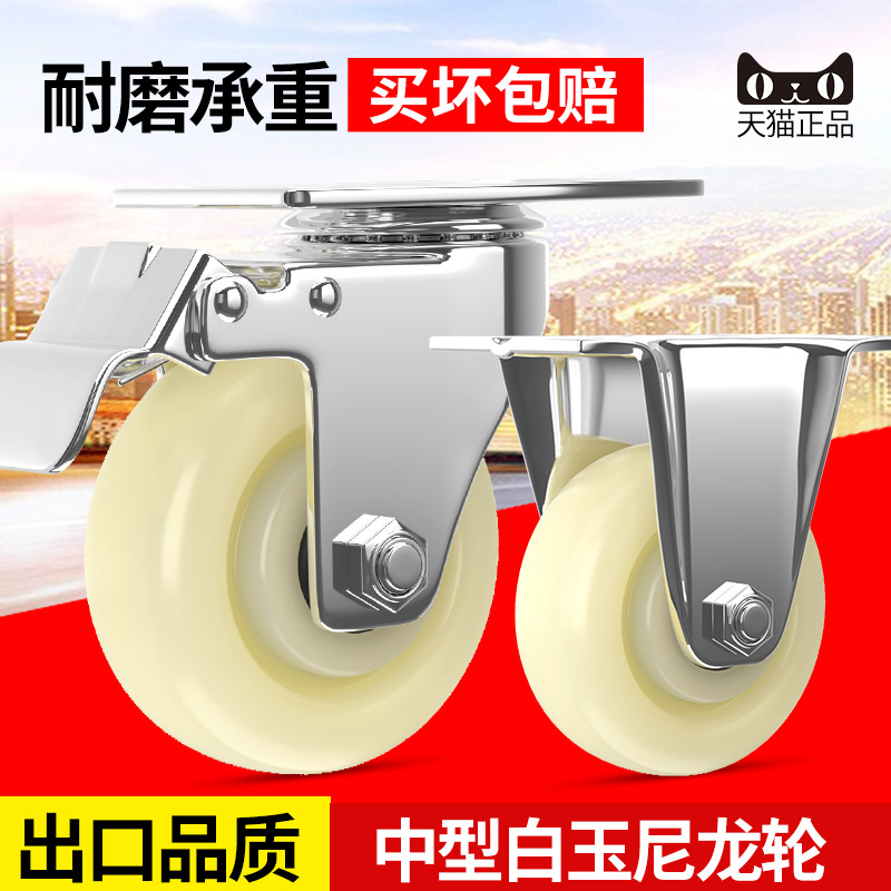 Nylon universal wheel wheel wheel pulley trolley caster accessories large heavy steering base with brake wheel