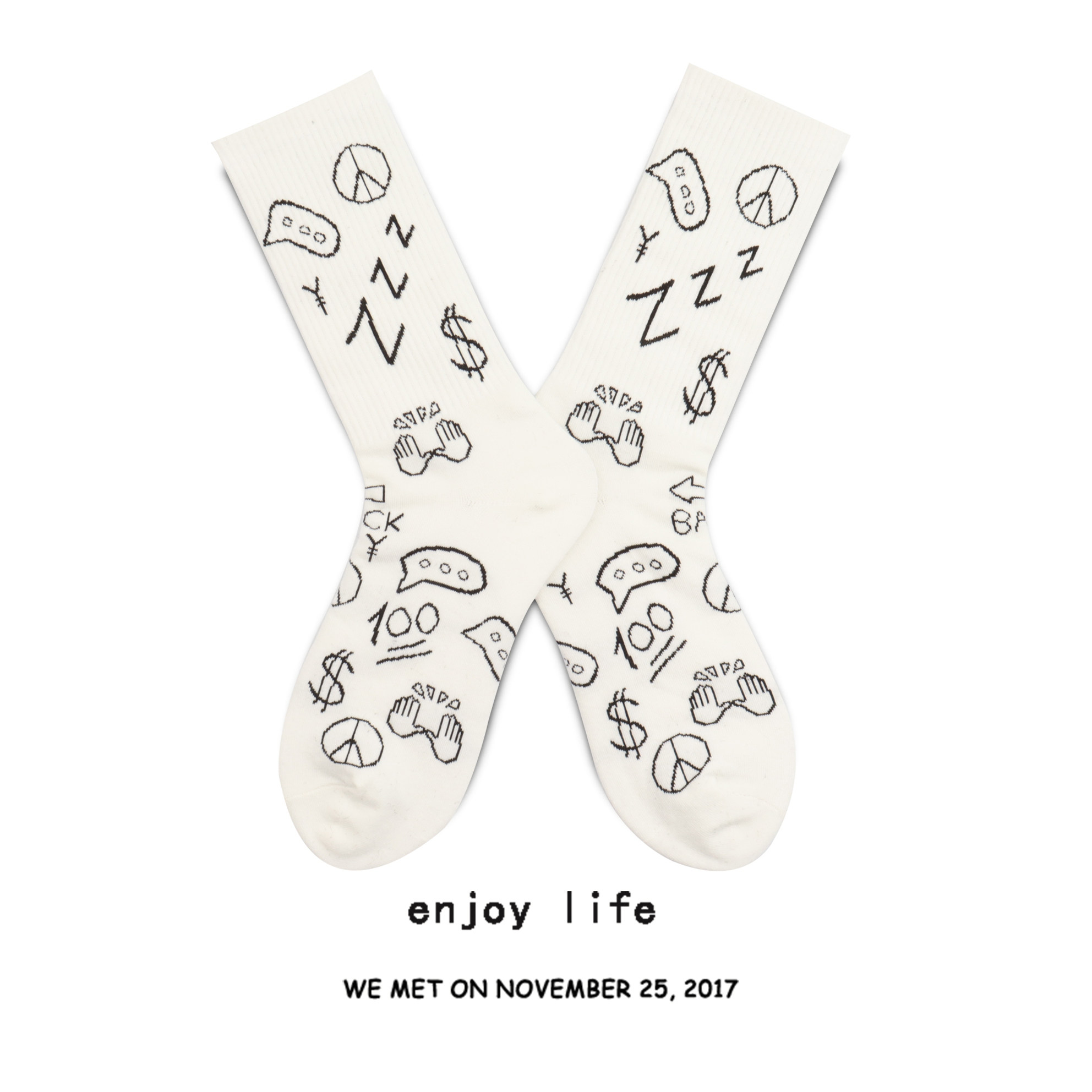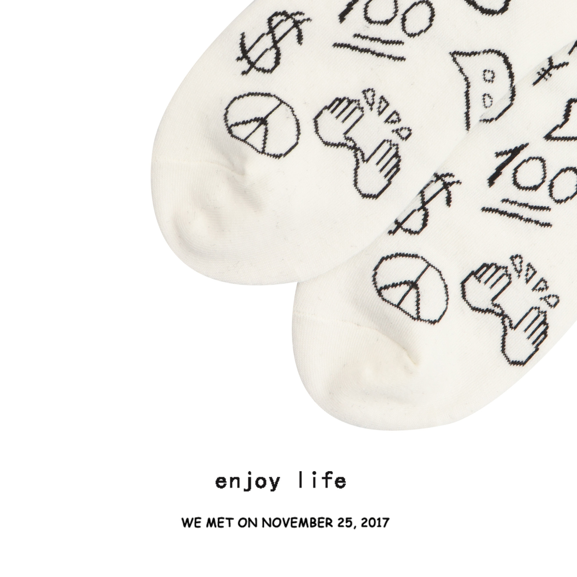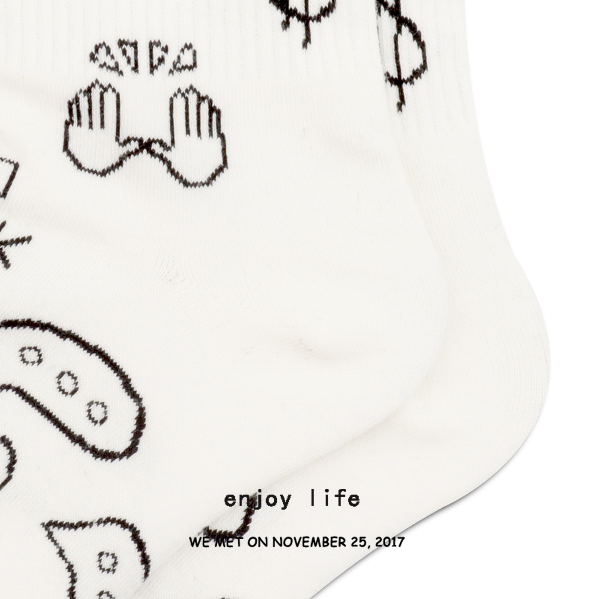 Socks female autumn and winter pure cotton hip hop stockings male white graffiti cute cartoon in tide and hao Korean version of mid-socking female