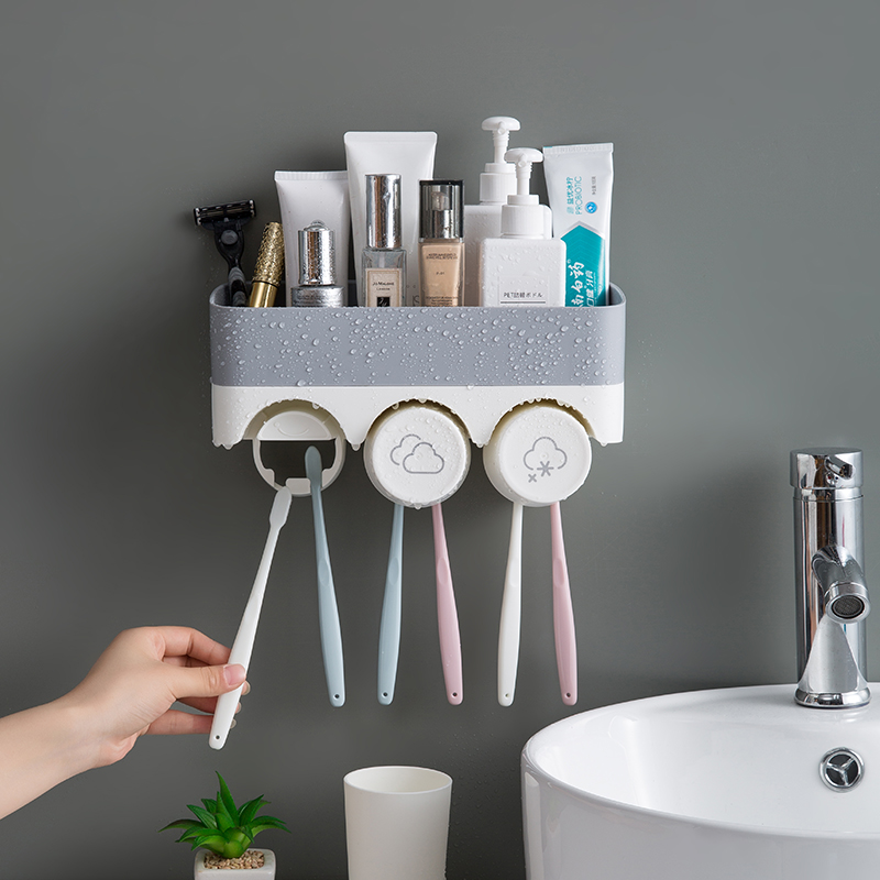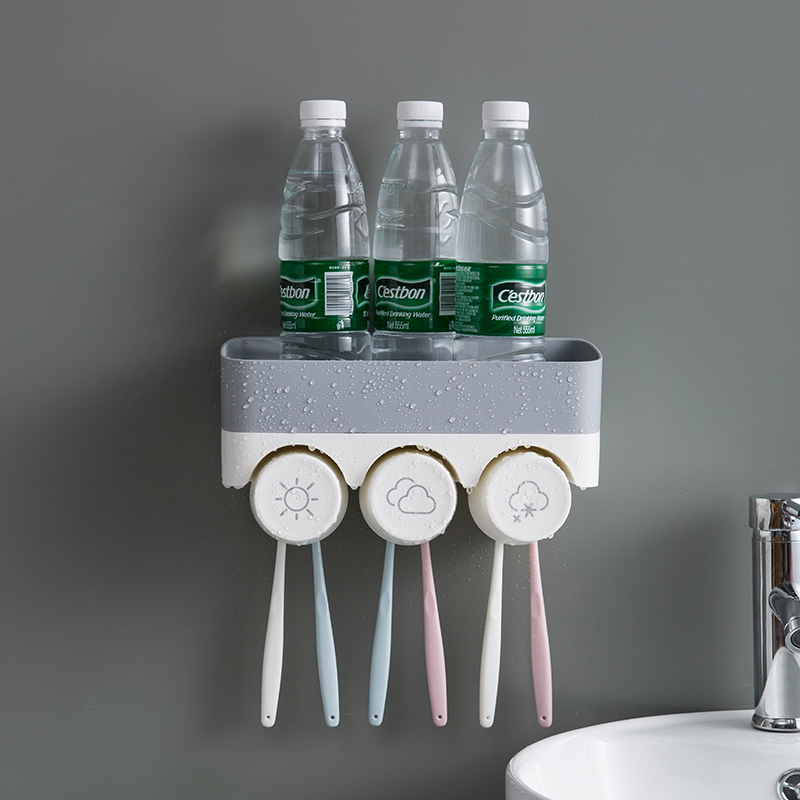 Powder room wall-mounted toothbrush shelf Hole-free brushing cup Suction wall-mounted suit Wall-mounted mouthwash dental appliance dental cylinder