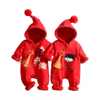 Baby winter jumpsuit thickened big red festive New Year Tang dress for men and women baby 100 days old out dress
