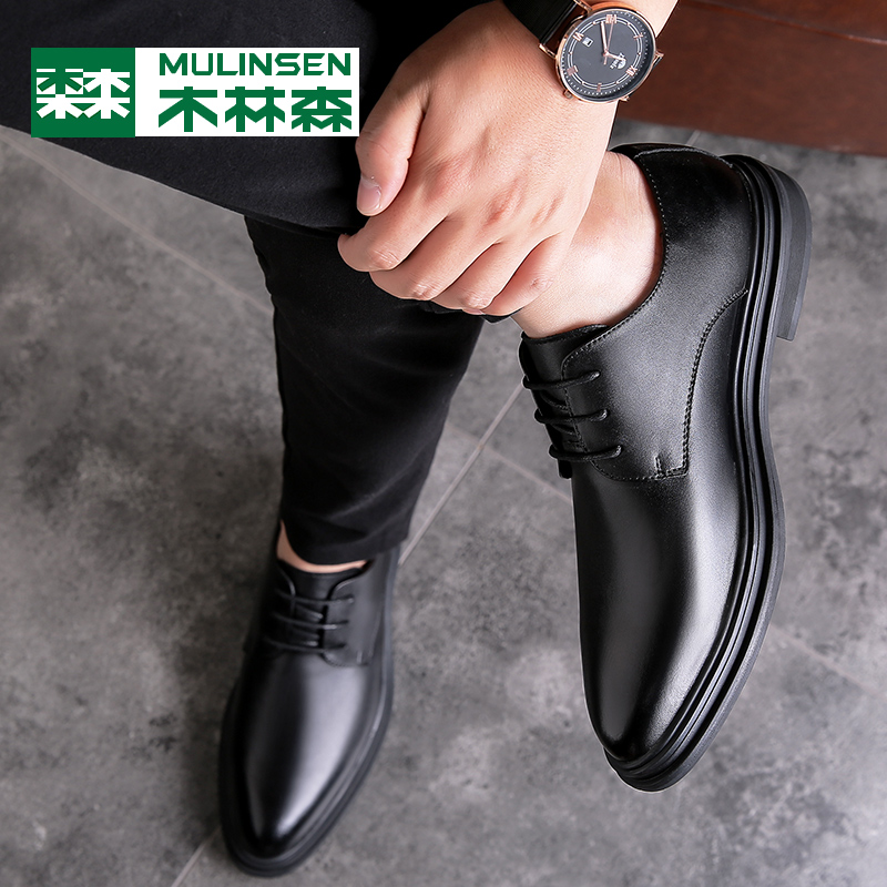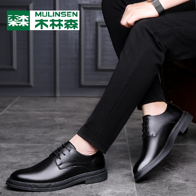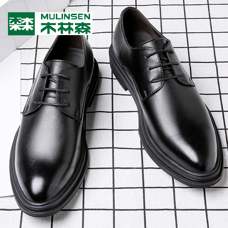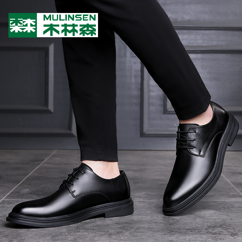 Mulinsen men's shoes 2022 new casual heightened leather shoes Korean version of the trend dress British business leather shoes men
