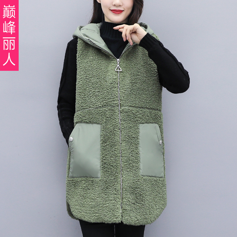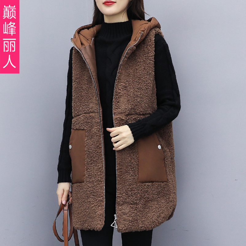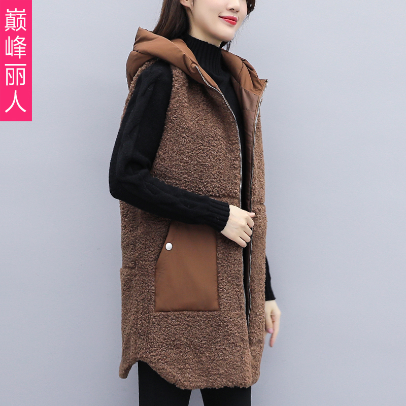 Lamb wool waistcoat Autumn Winter 2021 New Medium Long Version Thickened Plush Vest Foreign Pie Loose Cotton Waistcoat Jacket