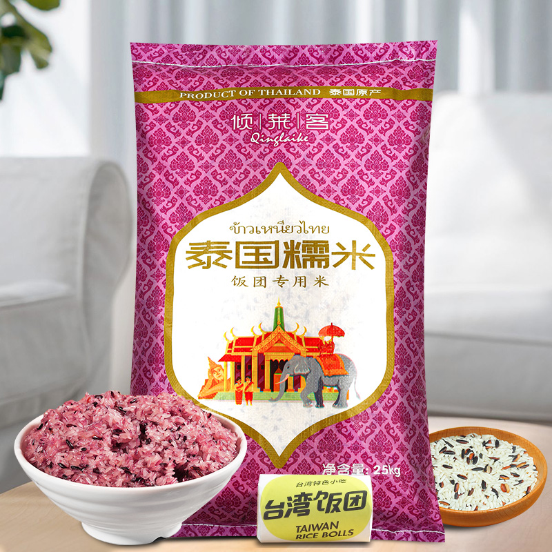 The rice balls are steamed with blood glutinous rice imported from Thailand to become purple Taiwanese rice wrapped rice