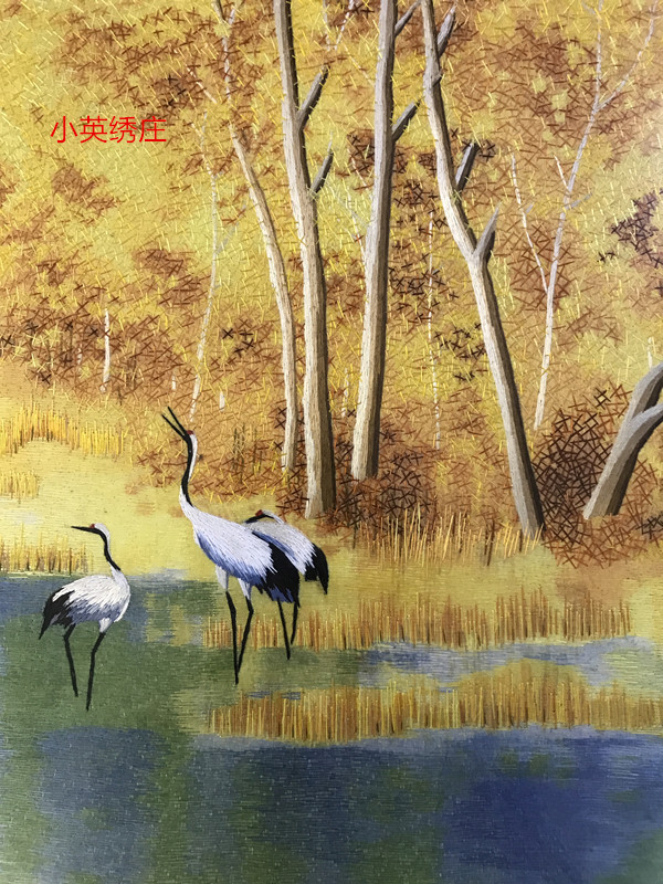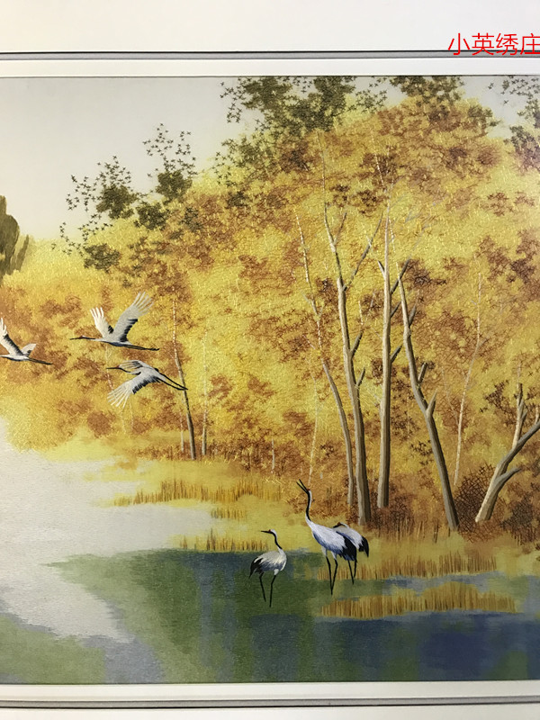 Pure handmade new boutique Suzhou embroidery painting Su embroidery finished hanging painting Entrance decorative painting 3535 birch forest
