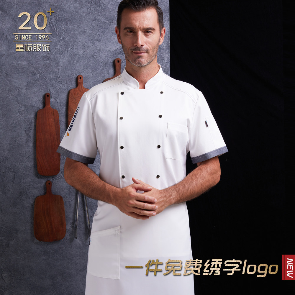 Chef clothing custom hotel short-sleeved breathable summer catering cake kitchen large size hotel high-end chef clothing