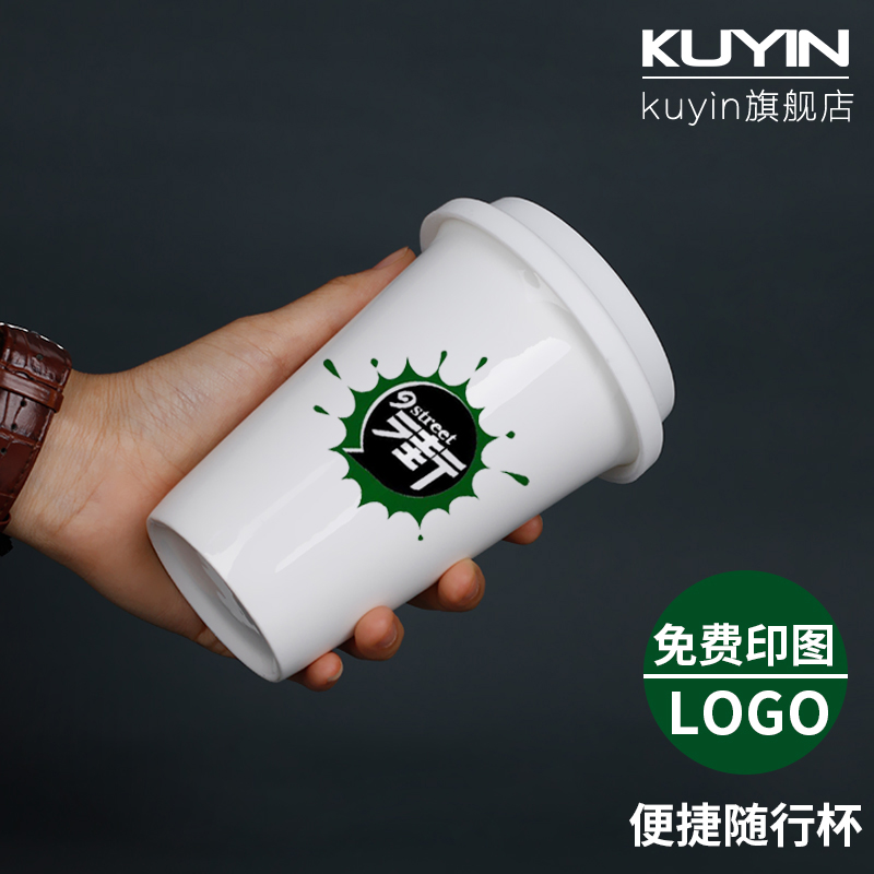 kuyin bone china mug custom coffee cup printed logo two-dimensional code publicity convenient cup large capacity cup a