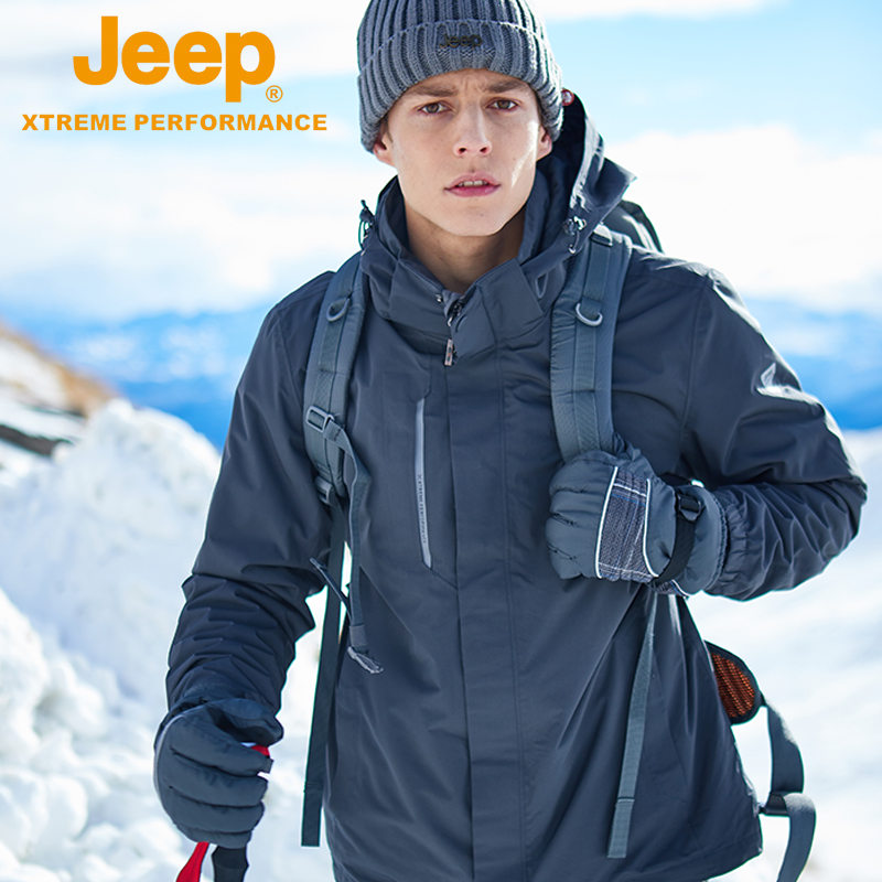 Jeep Men's Clothing Flagship Store Outdoor Assault Suit Men's Three-in-one Detachable Plus Suede Thickened Waterproof Mountaineering Suit Jacket