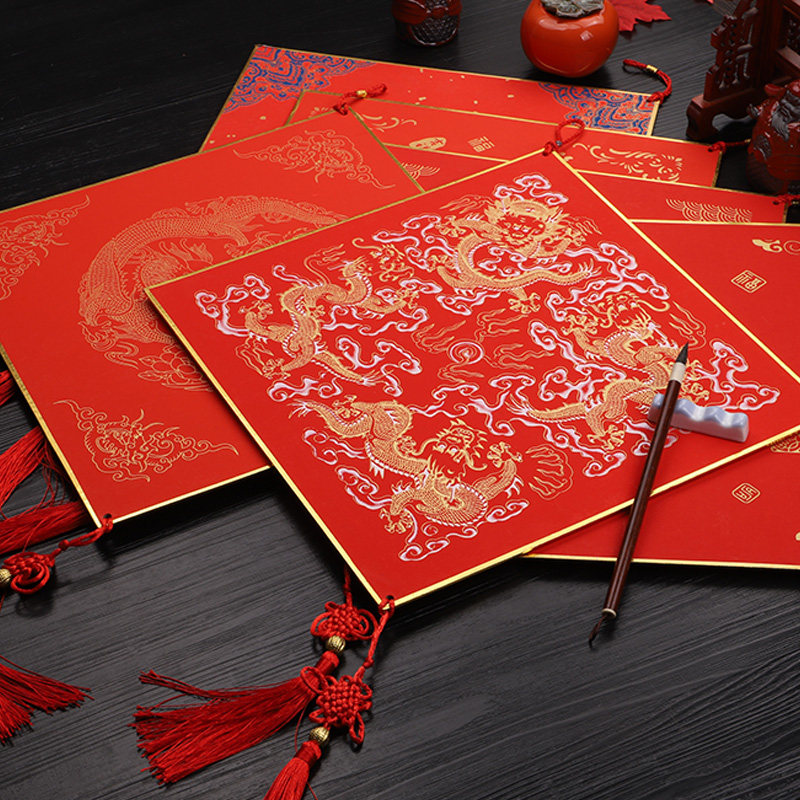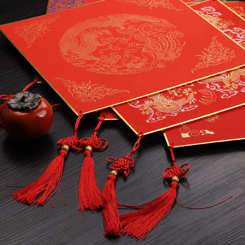 Fu word paper blank Wannian red rice paper cardboard red bucket square hard card brush Fu word calligraphy diy Fuka pendant Chinese knot hard cardboard
