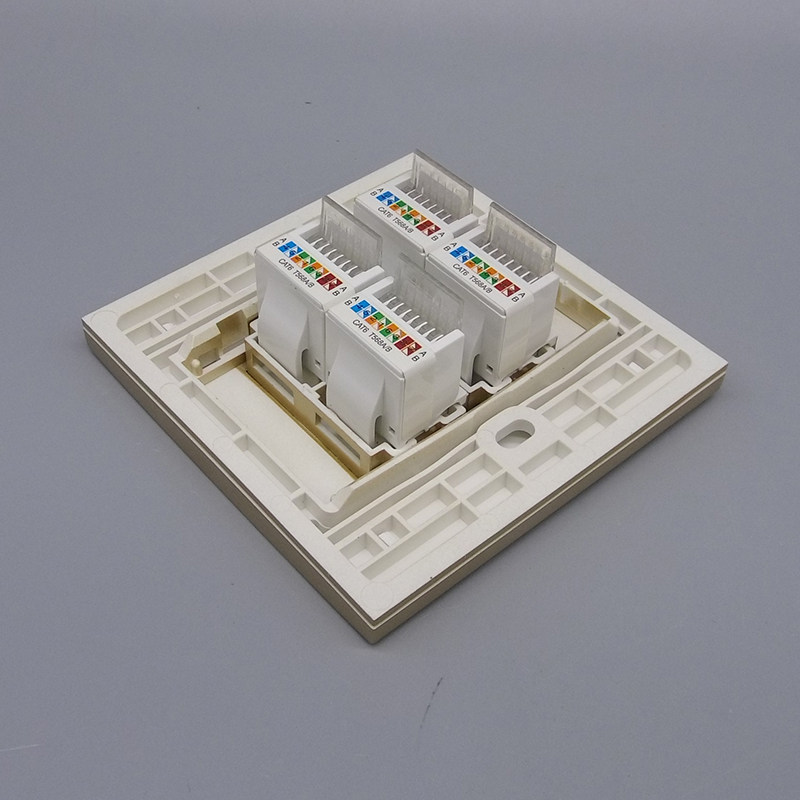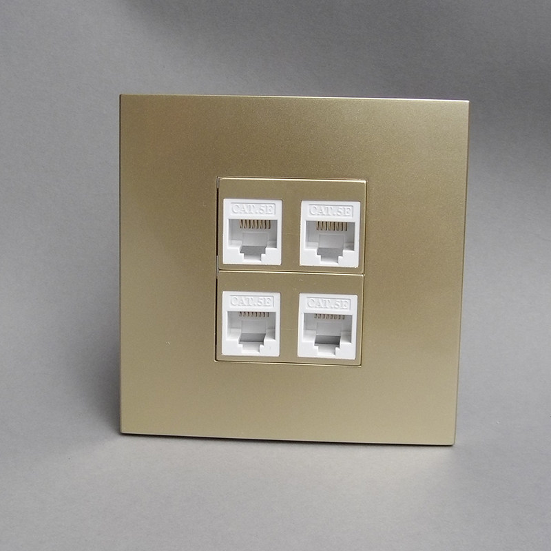 Type 86 champagne gold two-bit four-port six-type computer panel RJ45 gigabit network cable broadband switch wall plug