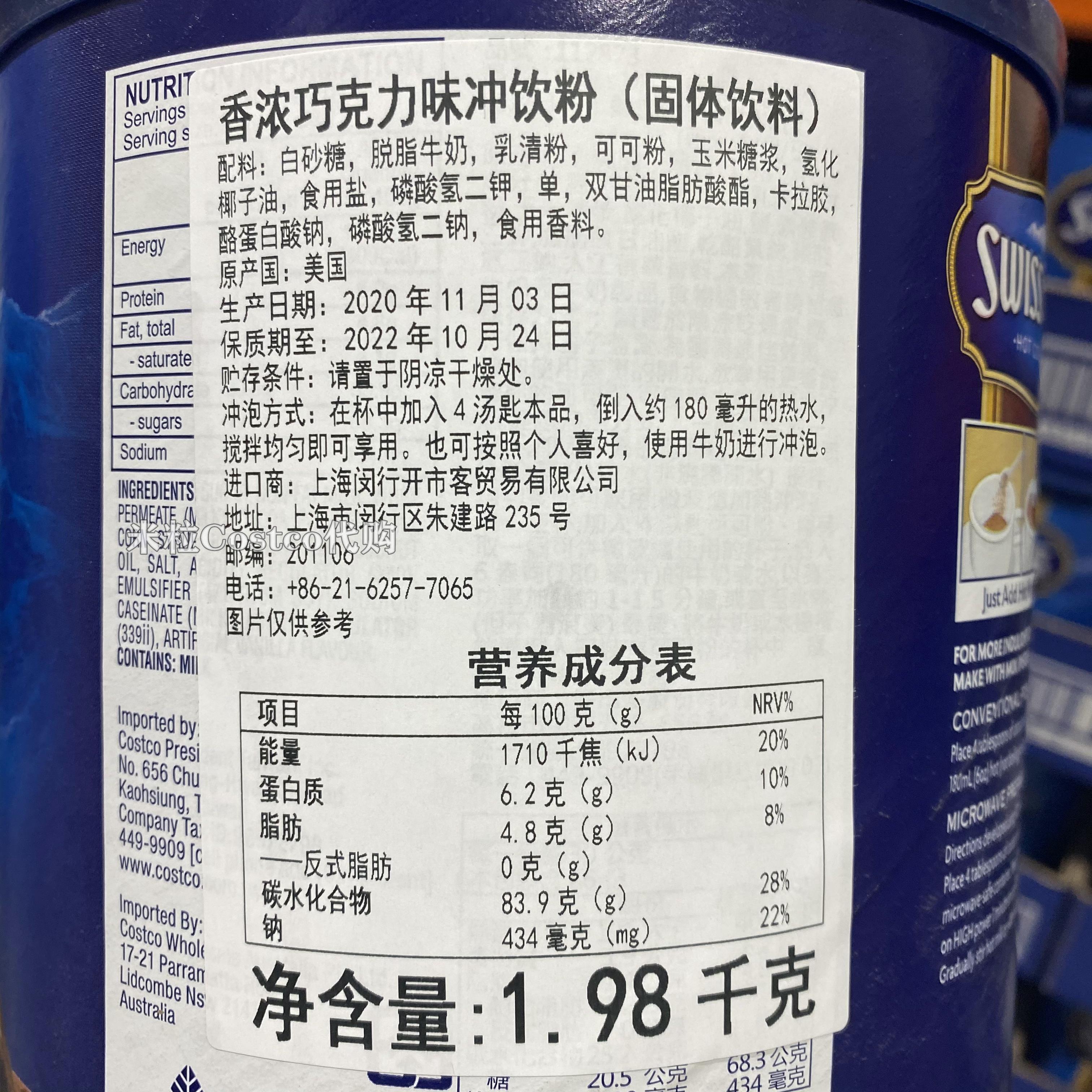 Shanghai Costco Open Costco USA Imported Miss Switzerland fragrance chocolate brewing drink powder 1 98kg