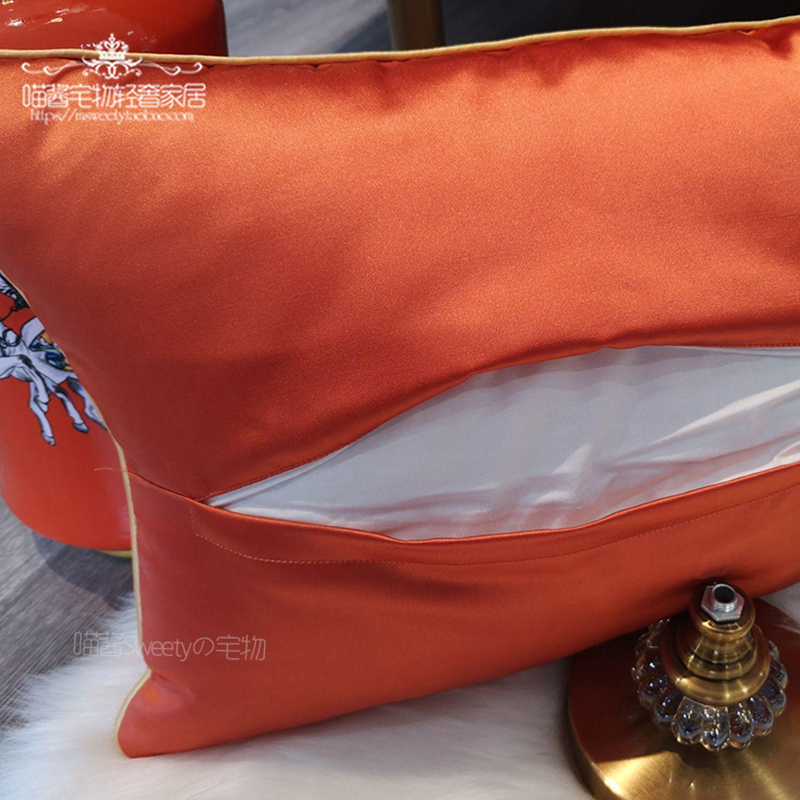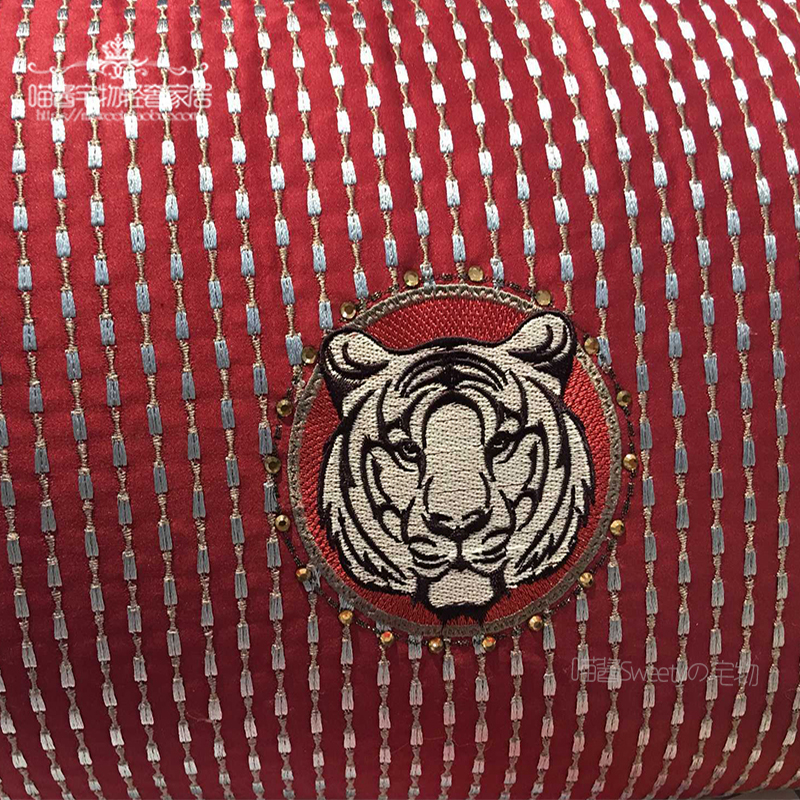 High-grade imitation silk imported yarn embroidery European-style luxury tiger head H-horse sofa model room decoration waist pillow cushion