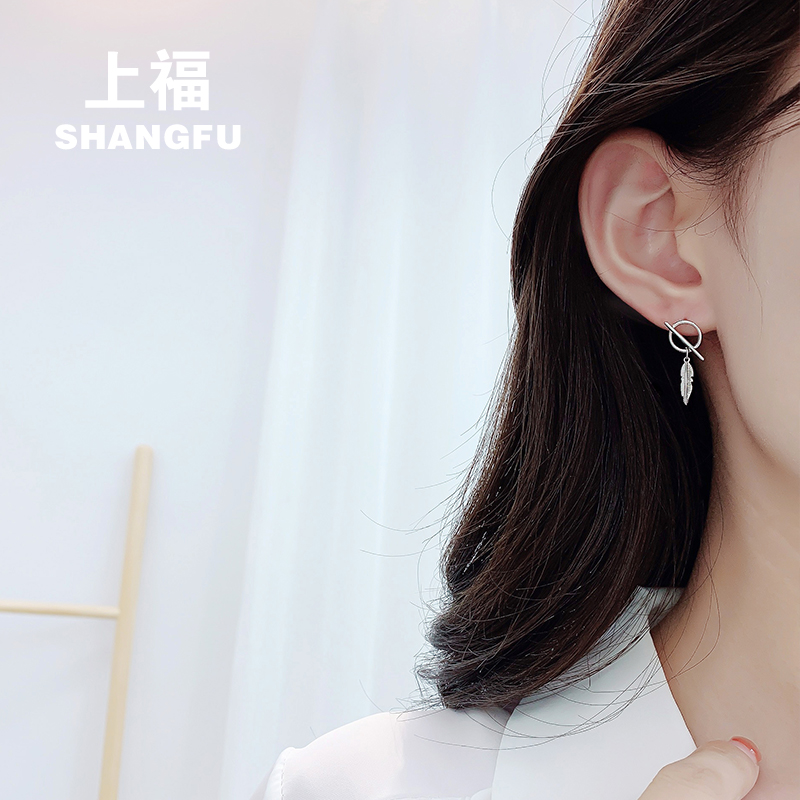 Flow SuFour leafy grass earrings pair with a pair of feather earrings pair
