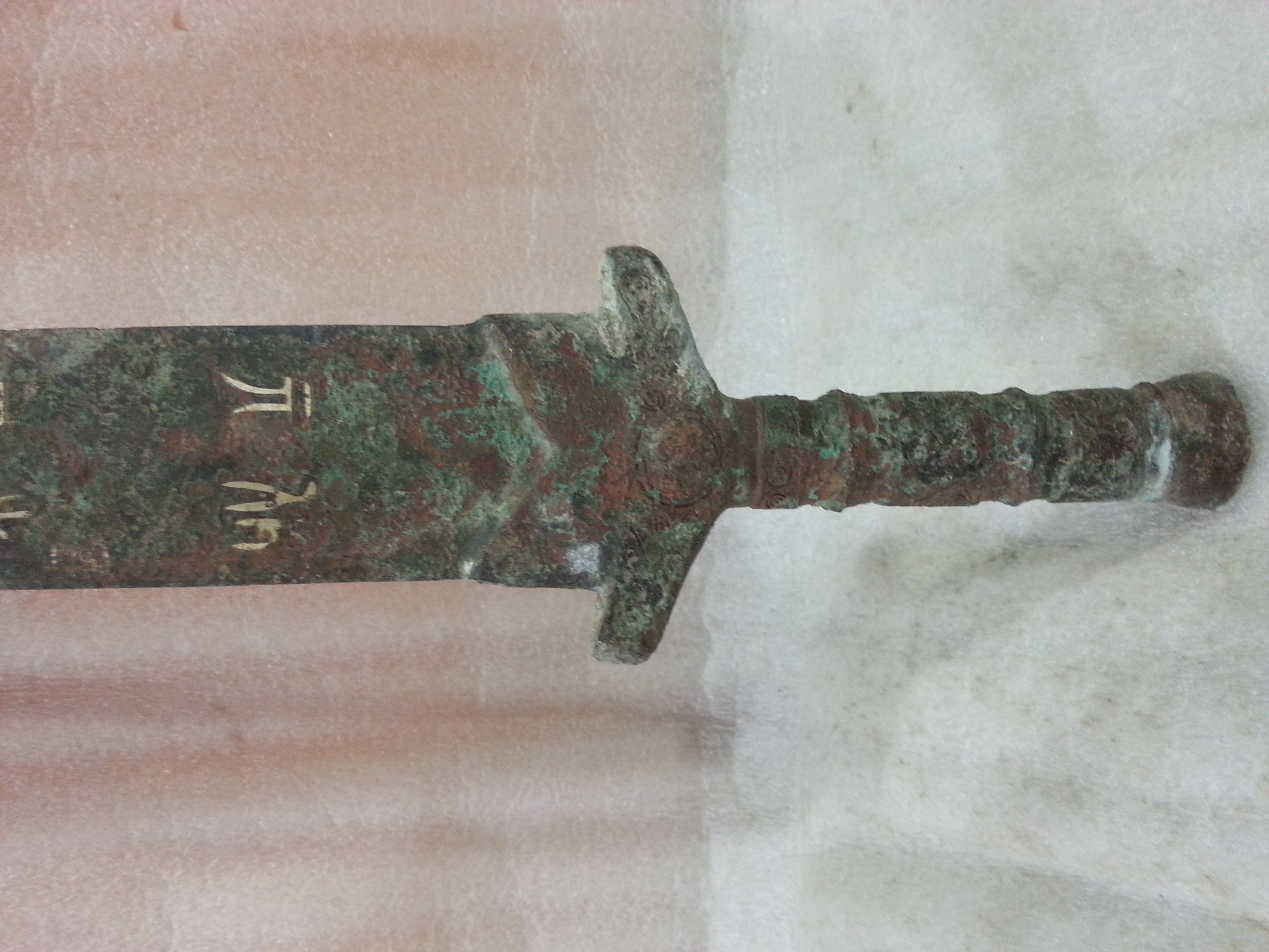 Antique bronze inscription of silver bamboo festival sword rust into bone calcification deep furnished replication antique weapon