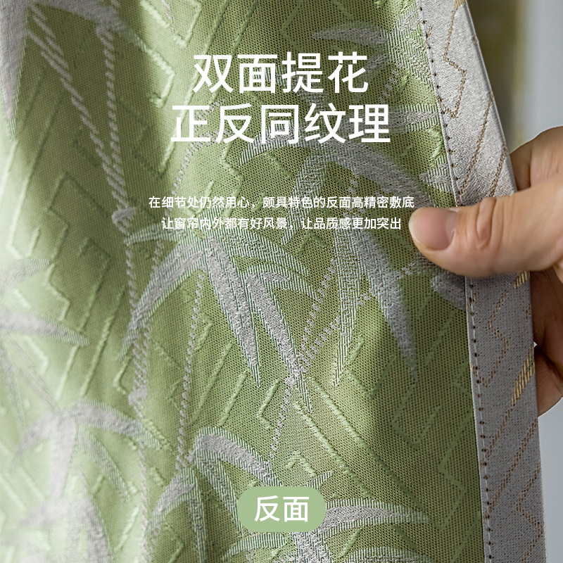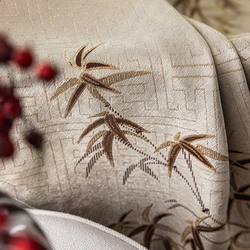 New Chinese bamboo leaf Ping An Living Room Curtain Bedroom Finished Products Thickening All-shade Flood Window Balcony Studio Fabric