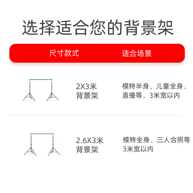 2.6X3m thickened background rack + bag delivery clip 2X3m ordinary background rack + package delivery clip