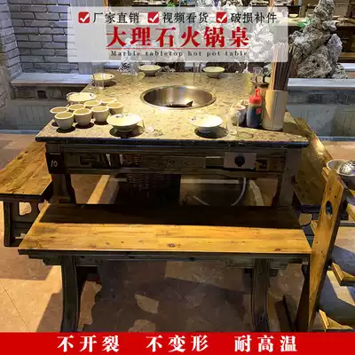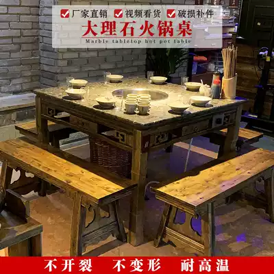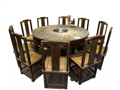 Hot pot shop round marble hot pot table Induction cooker integrated restaurant commercial round table solid wood dining table and chair combination