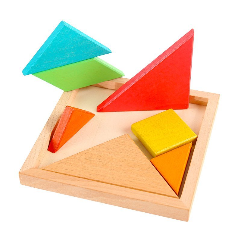 Variety teaching aids toy shapes early education colorful board intellectual puzzle primary school students building blocks wooden assembled triangular board