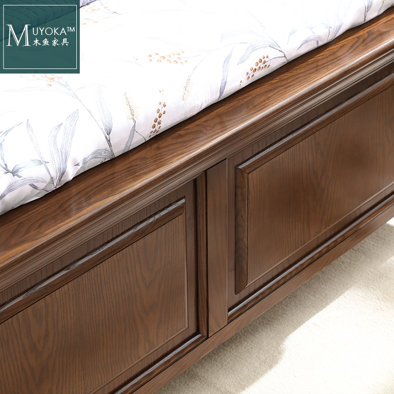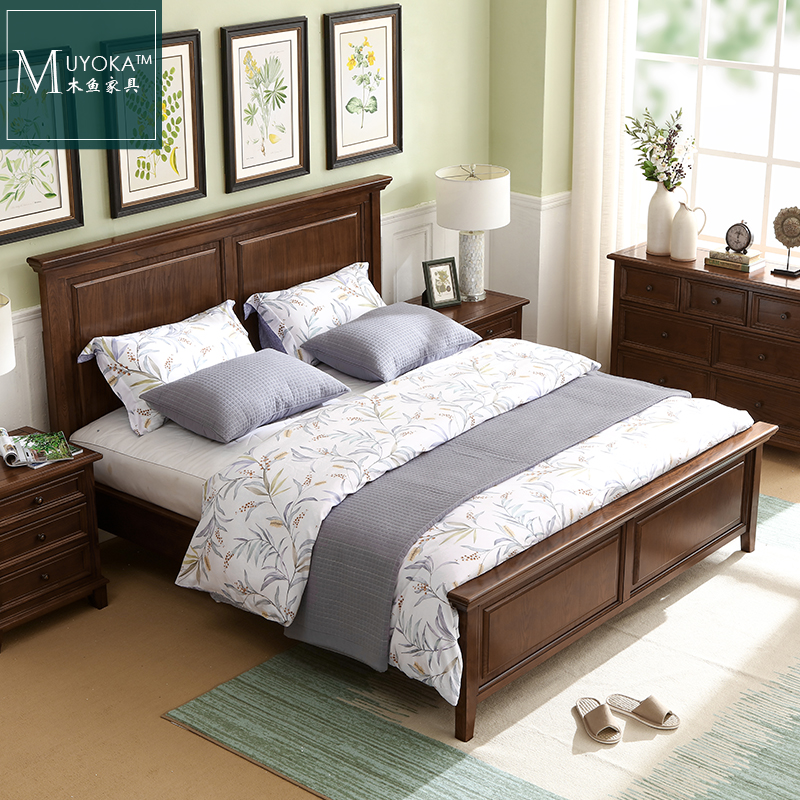 American Countryside White Wax Wood Walnuts Color Retro Bedroom Flat Head Bed Classic Double Bed
